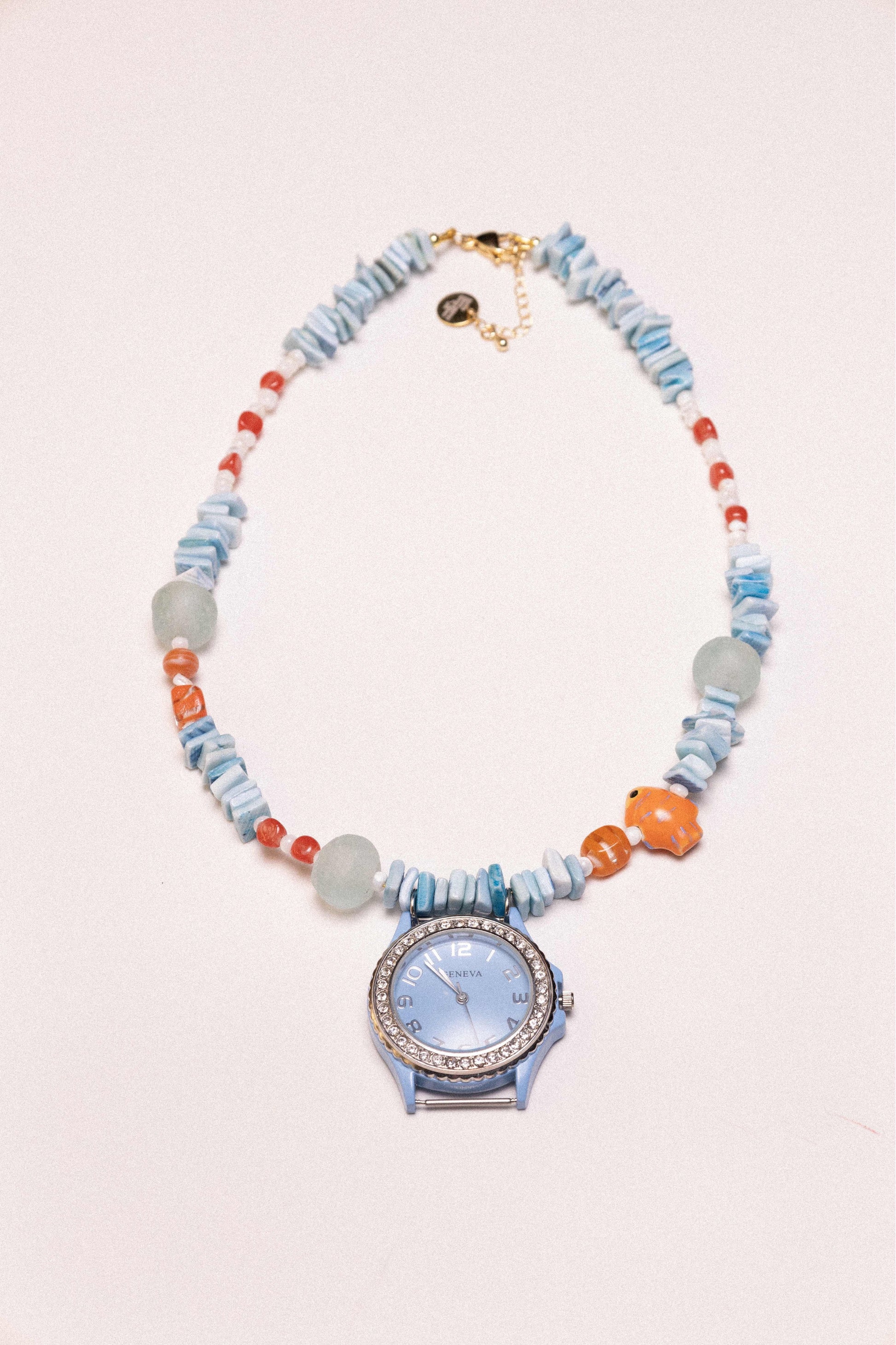 Crafted with a carefully assembled beaded base, this watch charm necklace features stainless steel charms and a vintage watch face, making it a true conversation starter. While some of the watch faces may no longer tell time, they add a bold, unexpected twist to your look. Each piece is in excellent condition, with unique character that may include subtle imperfections—details that make it feel truly one-of-a-kind, just like you.