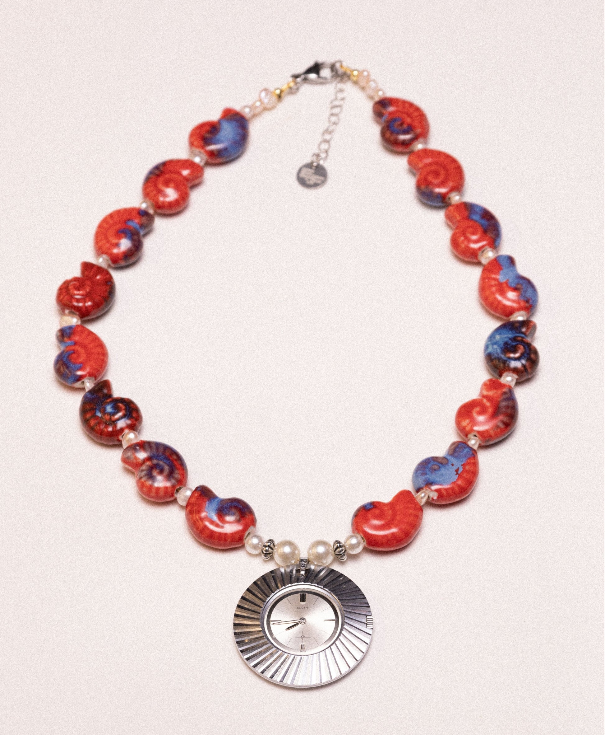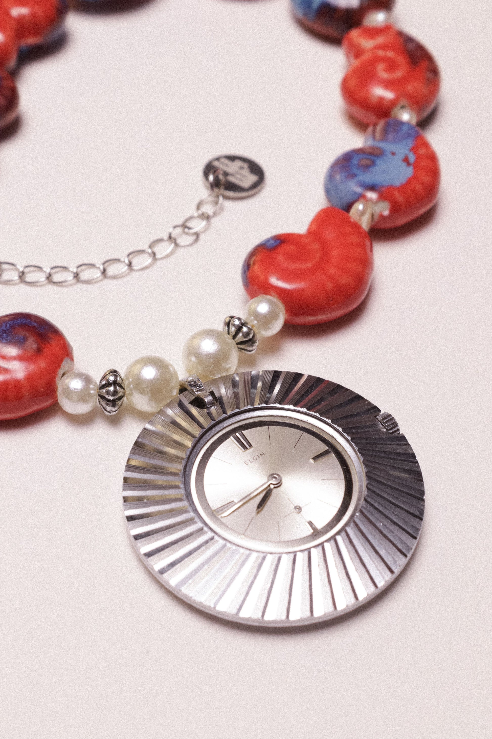 Crafted with a carefully assembled beaded base, this watch charm necklace features a vintage watch face, making it a true conversation starter. While some of the watch faces may no longer tell time, they add a bold, unexpected twist to your look. Each piece is in excellent condition, with unique character that may include subtle imperfections—details that make it feel truly one-of-a-kind, just like you.