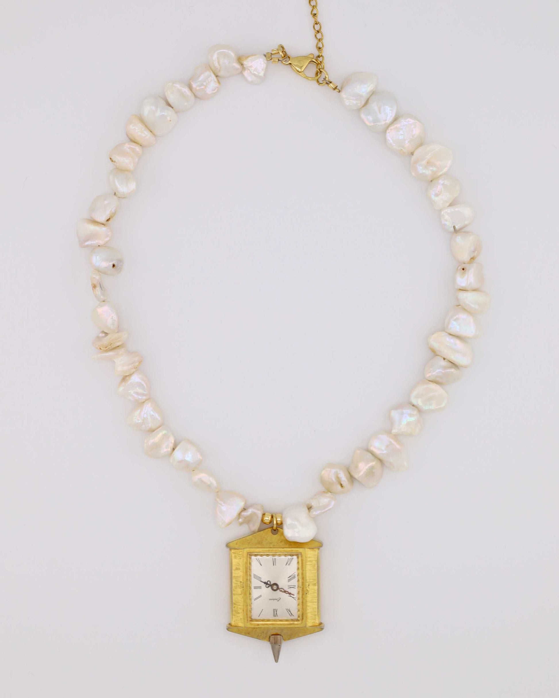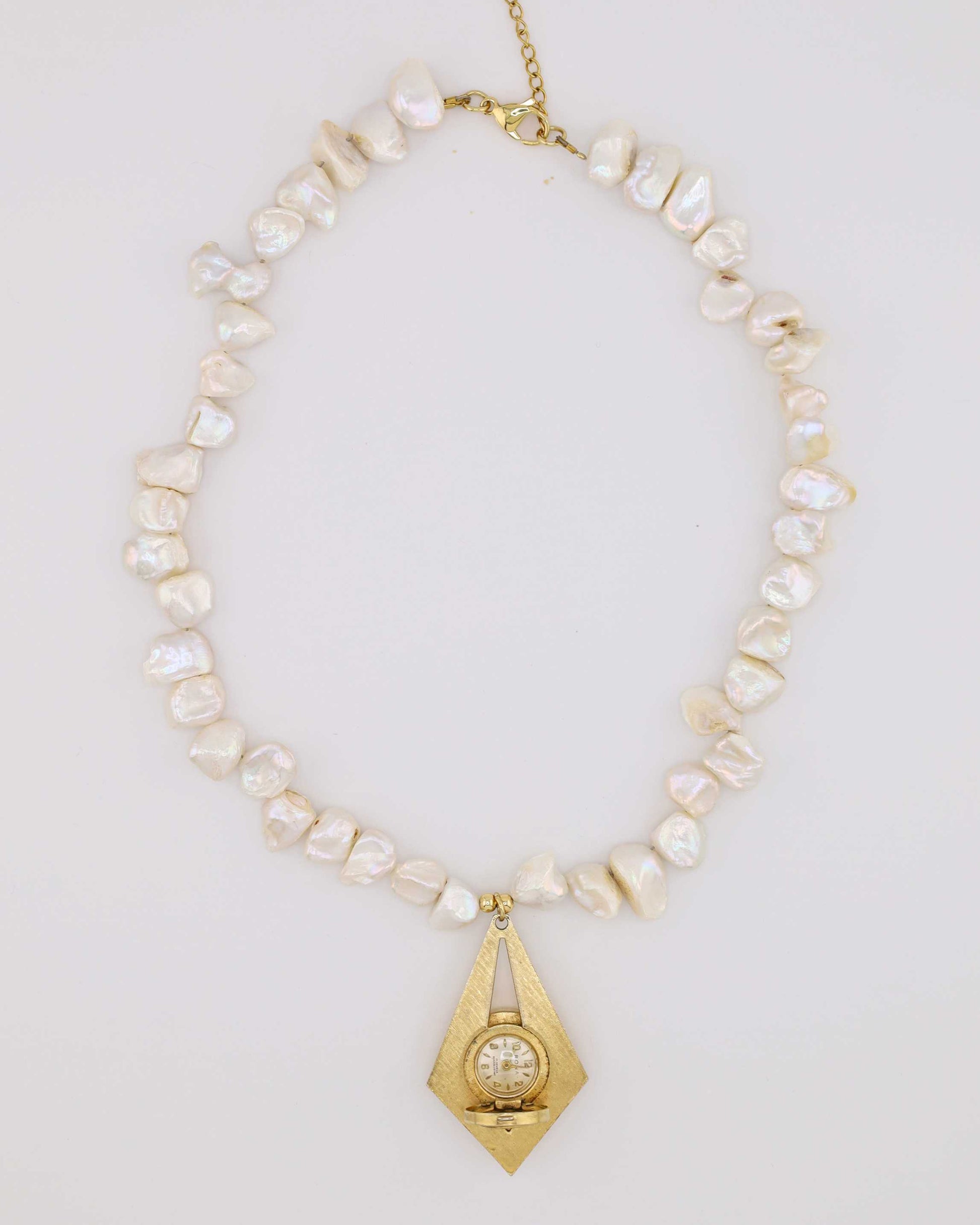 Designed and handmade by us with care, our new Marfil Pearl Necklace is a classic design. Crafted from durable stainless steel and pearls, this watch necklace features a vintage watch centerpiece, blending function and style in a unique, wearable piece. Each watch centerpiece has its own character and may have minor scratches or imperfections, making every necklace truly one-of-a-kind, just like you.